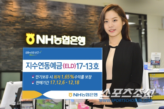 NH농협은행은 6~18일 1.65%(개인기준)의 최저수익률을 보장해주는 '지수연동예금(ELD)17-12호'를 판매한다고 밝혔다.