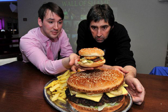 데일리메일에 따르면 이 가게는 30분안에 괴물버거를 다 먹는 손님에게 버거값 10파운드(1만6900원)를 받지 않겠다고 밝혔지만 아직 성공한 고객이 없었다고 전했다.