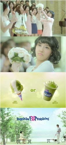 또한, 결혼식에서 부케만 받는 노처녀의 지친 마음을 녹색의 그린티 티라미스 아이스크림과 키위 블라스트로 힐링한다는 내용의 '녹색의 휴식' 등 총 세 편의 광고 속에 배스킨라빈스만의 친근함과 선택의 즐거움을 담아냈다.