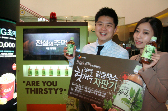 CJ제일제당 '컨디션 헛개수'가 생활 속 갈증을 날려 줄 '갈증해소 자판기' 이벤트를 오는 14일까지 상암 CGV에서 실시한다.
