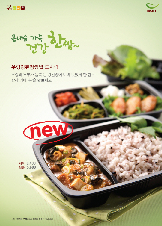 프리미엄 한식 도시락 브랜드 본도시락(대표 김철호)은 봄 신메뉴로 강된장에 우렁과 두부를 듬뿍 넣은 '우렁강된장쌈밥'을 출시한다고 15일 밝혔다.