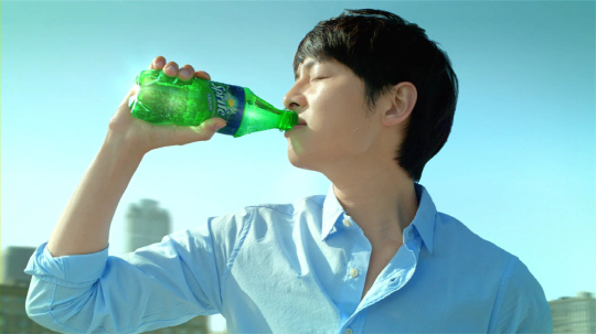 길거리 농구의 에피소드를 담아 '상쾌한 자유'를 표현했던 전편 광고에서는 송중기의 액티브한모습을 통해 스프라이트의 짜릿함을 강조했다면, 이번에 방영된 TV 광고 ('나를 깨우는 깨끗함 편')에서는 순수청년으로 불리는 송중기의 꾸미지 않은 매력을 마음껏 발산할 수 있는 광고 콘셉트로 진행되었다. 모델이 가진 깨끗한 매력을 통해 스프라이트가 지닌 깨끗함과 시원함을 극대화시키고자 한 것.