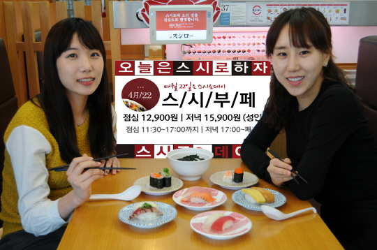 세계 최대 회전초밥 레스토랑 스시로한국(대표 최세철)은 오는 22일 4월 스시로데이를 맞아 무제한 스시를 즐길 수 있는 스시뷔페 프로모션을 진행한다고 밝혔다.