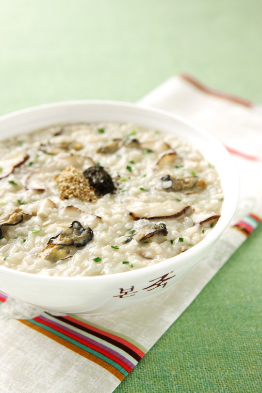 웰빙죽 전문점 본죽의 버섯굴죽은 버섯의 부드러운 식감과 시원한 굴향이 풍부하게 어우러져 황사를 이기는 웰빙 푸드의 대표적 메뉴다.