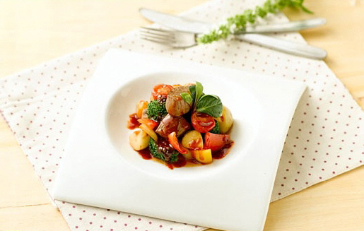 소스를 준비한 후에는, 쇠고기 안심을 한입 크기로 잘라 허브 솔트로 밑간을 해 두고, 알감자, 표고버섯과 브로콜리, 양파, 피망, 파프리카, 마늘 등 다양한 색의 갖은 야채들을 한 입 크기로 잘라 준비한다. 브로콜리, 마늘은 살짝 데치고 알감자는 2/3 정도가 익을 때까지 삶는다. 팬에 양파, 마늘을 넣고 볶다가 준비해 둔 고기를 넣고 겉면이 익을 때까지 볶아준 후, 나머지 재료를 넣고 센 불에 볶는다. 여기에 미리 만들어 둔 고추장소스를 넣고 버무리면 고기와 야채, 그리고 매콤한 소스가 잘 어우러진 '고추장소스 야채스테이크'가 완성된다.