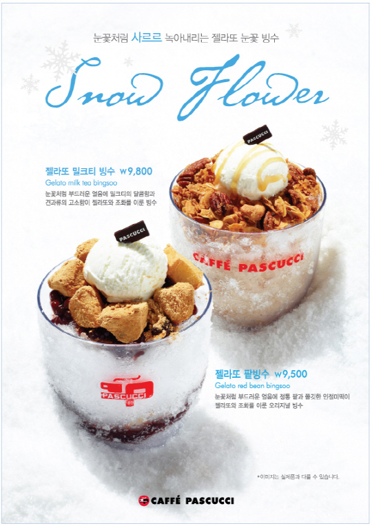 파스쿠찌의 신제품 젤라또 팥빙수와 젤라또 밀크티 빙수는 눈꽃 얼음을 사용하여 입에서 사르르 녹아 내리는 고운 빙질을 자랑한다. 또한 정통 이탈리안 아이스크림인 젤라또를 얹어 눈꽃 얼음과 함께 보다 부드럽고 시원하게 빙수를 즐길 수 있다.