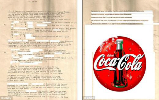 보도에 따르면 이 부부는 1943년에 씌여진 이 문서를 코카콜라 제조 공식으로 확신하고 경매사이트인 이베이에 최초 경매가 500만달러(약 55억원)에 올렸다.