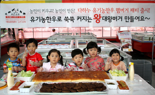 새롭게 오픈한 다하누AZ쇼핑 일산점에서 진행된 이번 행사는 장안농장과의 유기농 한우 직거래 활성화 및 본격적인 판매를 기념하기 위해 마련됐으며 지역주민을 비롯한 많은 어린이 들이 참가해 한우 패티 등 10여가지 재료로 1미터(m)짜리 초대형 햄버거를 함께 만들고 이후 무료 시식회도 진행됐다.