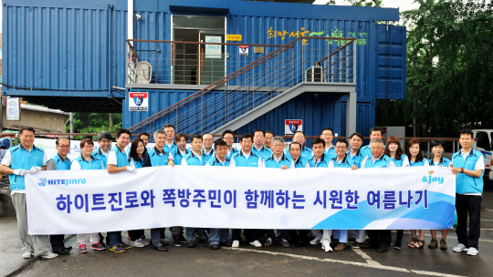 하이트진로 임원들이 창립기념일을 맞아 지난 18일 서울시 영등포 쪽방촌에 거주하는 어려운 이웃을 찾아 봉사활동을 펼쳤다.