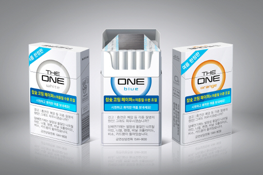 '더원' 여름 한정판은 '더원 블루', '더원 오렌지', '더원 화이트' 3종이며, 니코틴과 타르 함량은 기존제품과 동일하다. 가격은 갑당 2500원이다. [소비자인사이트/스포츠조선] 송진현 기자 jhsong@sportschosun.com