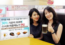 스시로는 이번 핫섬머데이 이벤트를 통해 기상청 발표기준으로 30도가 넘는 날에는 생맥주를 포함해 맥주와 함께 즐길 수 있는 튀김메뉴와 여름 시즌메뉴인 냉메밀 세트를 50% 할인가에 제공한다.