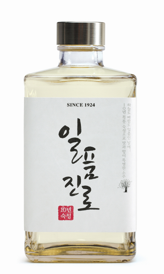 '일품진로'는 순쌀 증류원액을 참나무 목통에서 10년 이상 숙성시킨 소주로, 숙성 원액을 100%사용했다.
