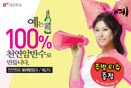 여름휴가용 한정판 '시원' 및 '예'소주는 20개 들이 종이박스 겉면에 '주방 티슈 증정'이라고 인쇄된 빨간 스티커가 붙어 있으며, 사은품으로 박스 안에 1회용 주방 티슈 10장이 들어있다.