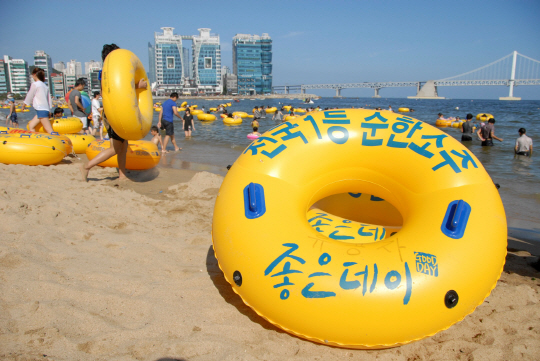 광안리에서는 튜브 마케팅을 전개하고 있다. 노란 튜브 약 2천여개에는 '전국 1등 순한소주 좋은데이'가 인쇄되어 있다. 무학은 대여용 튜브에 이 같은 문구를 사용하기로 광안리 해수욕장 측과 제휴를 맺었다.