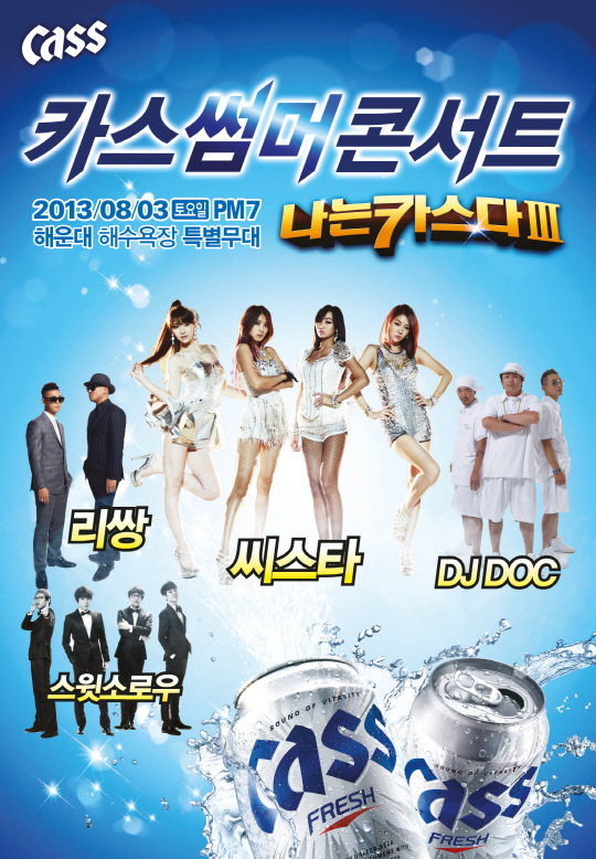 페스티벌의 메인 행사인 '카스 썸머 콘서트'는 3일 해운대 해수욕장 특설무대에서 펼쳐진다. 이번 콘서트는 DJ DOC, 씨스타, 리쌍, 스윗소로우 등 유명 가수들이 출연해 해운대 피서객들에게 짜릿한 감동과 즐거움을 선사할 예정이다.