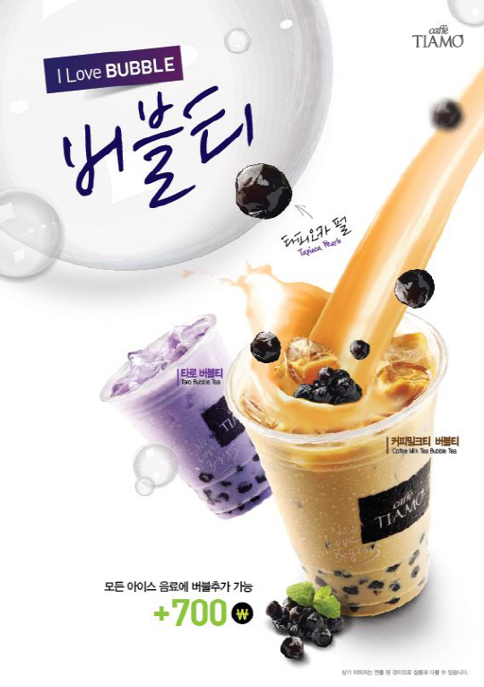 카페띠아모(www.ti-amo.co.kr)가 여름음료인 버블티를 새롭게 출시한다. 타로버블티, 커피밀크티버블티 등 2가지 종류로 모두 쫀득한 타피오카펄이 포함돼 있다. 타로 버블티는 달콤하면서 고소한 맛을 지니고 있다. 열대 아시아 작물인 타로가 주원료이며 연보라빛을 띄고 있다. 커피밀크티버블티는 옅은 갈색의 음료이며 홍차와 커피의 조합이 특징이다. 일반적인 밀크 버블티와 달리 에스프레소커피가 포함되어 커피향과 홍차향이 동시에 느껴지고 우유로 부드러운 식감까지 느낄 수 있는 제품이다.