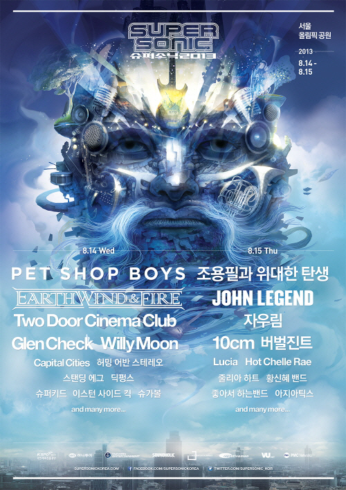 한편, 올해로 2회를 맞이하는 도심형 뮤직 페스티벌 슈퍼소닉 2013은 조용필을 필두로, 펫 숍 보이즈, 어스 윈드 앤드 파이어 등 국내외 약 35개 팀의 뮤지션들로 구성된 라인업으로 풍성한 볼거리와 즐길거리를 제공한다. 또한 록, 인디음악, 발라드 등 다양한 장르로 무대마다 각기 다른 특징을 선보인다. 소비자인사이트/스포츠조선=박재호기자 jhpark@sportschosun.com