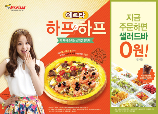 미스터피자는 하프앤하프 출시를 기념, 신제품 피자 '에그타' 및 '에그타 하프앤하프' 를 주문하는 고객에게 샐러드바를 '0원' 에 제공하는 이벤트를 진행한다. 레귤러사이즈 주문 시 샐러드바 2인 무료, 라지사이즈 주문 시 샐러드바 2인과 탄산음료 1잔을 무료로 이용할수 있다.