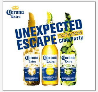 코로나는 '신나는 일탈(Unexpected Escape)'을 주제로 여는 이번 파티를 통해 클러버(Clubber)들에게 이색적인 즐거움을 제공할 예정이다. 코로나 로고와 제품 이미지로 장식된 수영장과 주변의 '아쿠아 바(AQUA BAR)'에서 병 입구에 라임 조각을 끼운 코로나만의 독특한 음용법을 체험할 수 있는 기회를 제공한다.