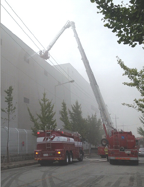경기도소방재난본부는 "불이 난 건물은 외벽에 창문이 없어 연기가 가득 차 있는데다 진입이 어려운 철골조 구조로 돼 있어 진화에 애를 먹고 있다"고 밝혔다.