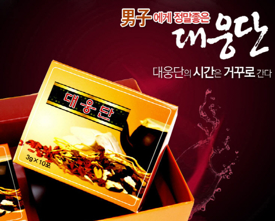 "대웅단"의 주성분인 산수유,복분자,구기자,하수오,홍삼 등 15가지이상의 30~60대 중년 남성들에게 좋은 성분들을 사용했다. "대웅단" 제품은 일반 환제품이 아닌 고농축 추출요법을 접목하여 고농축 성분 배합비율로 배합되어