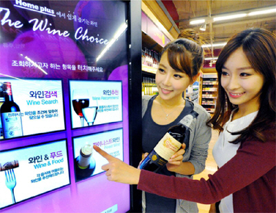 키오스크는 공공장소에 설치된 터치스크린 방식의 정보전달 시스템으로, 홈플러스 와인 코너에 설치된 키오스크를 통해 와인 가격대, 포도 품종, 지역의 와인, 용도, 음식과의 매칭 등 다양한 테마로 와인 검색이 가능하다.