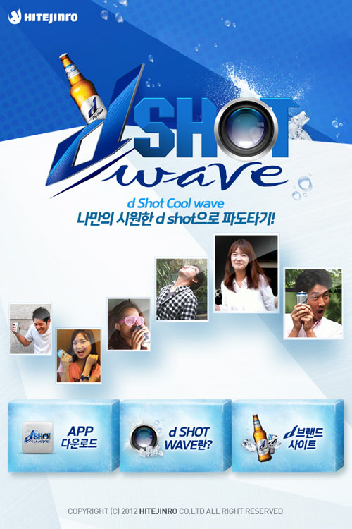 'd shot wave' 캠페인은 움직이는 사진을 찍을 수 있는 무료 어플리케이션을 활용해 술자리 문화인 파도타기를 시원한 d와 함께 전국민이 함께 즐길 수 있는 장을 마련하자는 취지로 기획됐다.