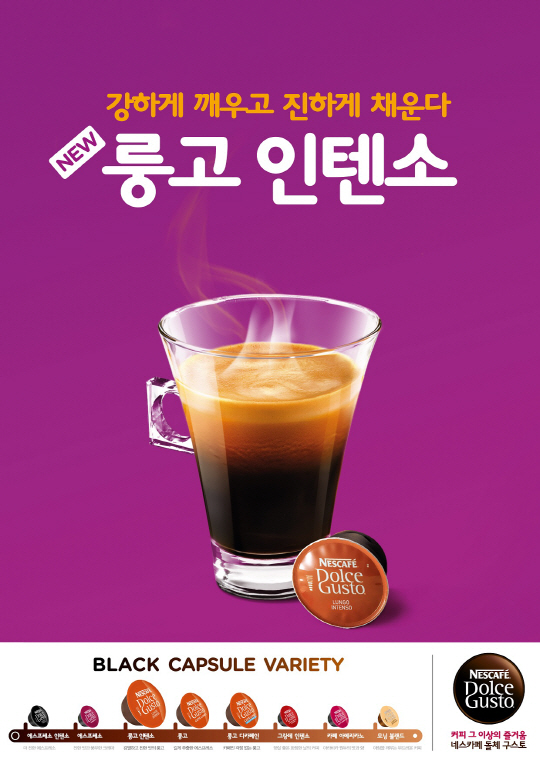 네스카페 돌체구스토는 이번 룽고 인텐소 출시로, 8가지의 다양한 블랙커피 라인 (에스프레소 인텐소, 에스프레소, 룽고 인텐소, 룽고, 룽고 디카페인, 그랑데 인텐소, 아메리카노, 모닝블렌드) 을 포함, 총 16가지 종류의 블랙 화이트커피 및 다양한 음료 캡슐을 선보이고 있으며, 이후에도 한국 소비자들의 입맛과 취향을 고려한 새로운 캡슐을 출시할 계획이다.