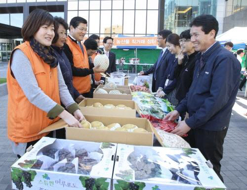 한화생명은 결실의 계절 가을을 맞아 16일 63빌딩에서 '1사1촌 농산물 직거래장터'를 열었다.