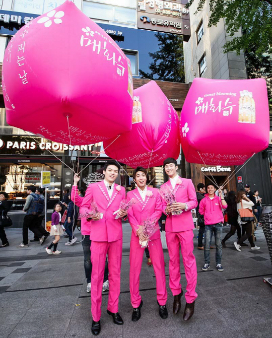 '매화수 핑크데이' 이벤트는 매화수의 주요 고객인 여대생들에게 매화수의 매력적인 감성을 전하는 이벤트로 오는 11월 1일까지 매주 화요일, 목요일, 금요일 3일에 걸쳐 서울 주요 대학가인 홍대, 신촌, 건대, 성신여대와 강남역 등 주요 상권에서 진행된다.