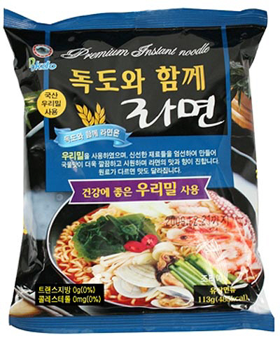 '독도와 함께라면'은 경남 하동군에서 수확한 100% 국산 우리밀로 만든 라면으로, 모든 제조 공정은 친환경 에너지와 재료만을 엄선해 사용했으며, 국내산 해물 재료를 사용해 자극적이지 않고 시원한 국물 맛이 일품이다. 기본구성 라면 30개의 가격은 39,900원. 론칭 방송 중 구매하면 10개 추가 구성과 함께 ARS 자동주문 시 10% 할인혜택을 받을 수 있다.