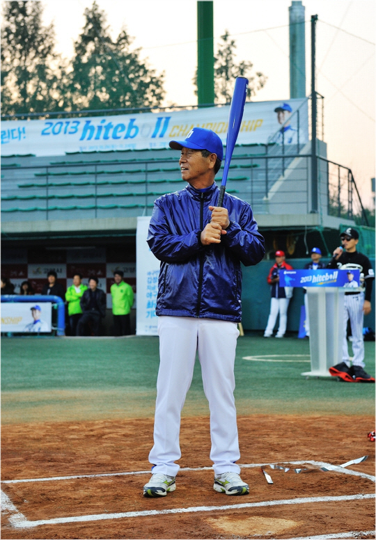 2013 하이트볼 챔피언십 개막식에서 시타에 나선 김성근 감독.