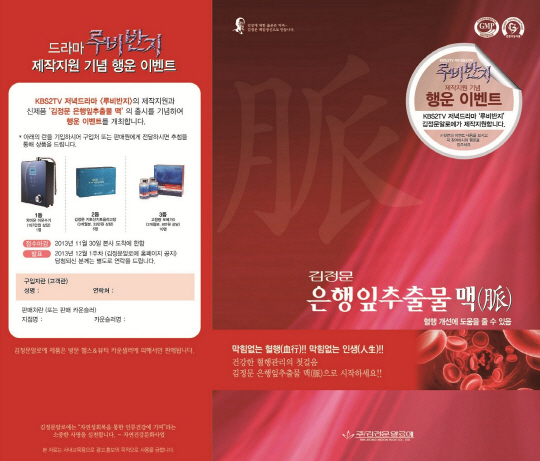 자연건강문화기업 김정문알로에(대표 최연매, www.aloe.co.kr)가 KBS 2TV 일일드라마 '루비반지' 제작지원과 신제품 '김정문 은행잎추출물 맥(脈)' 출시를 기념해 고객이벤트를 11월 30일까지 진행한다.