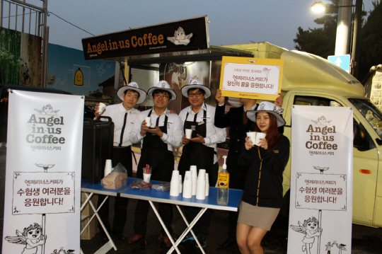 엔제리너스커피가 7일 수능시험을 맞아 수험생들을 응원하기 위애 이동 카페차량 이벤트를 펼쳤다. 사진제공=엔제리너스커피