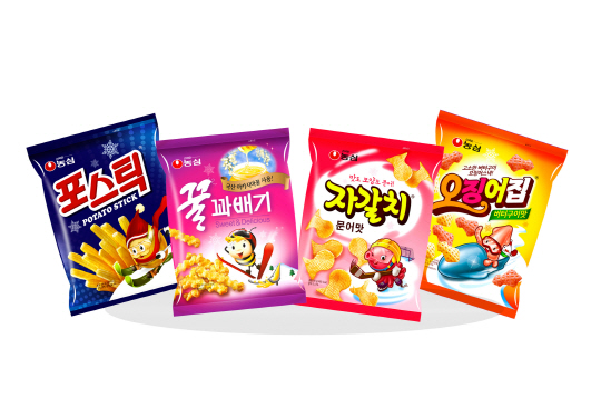 농심이 겨울을 맞아 농심 대표 스낵제품인 꿀꽈배기, 자갈치, 오징어집, 포스틱 제품 포장지가 새 옷을 갈아 입었다. 동계스포츠 시즌을 앞두고 제품의 대표 캐릭터가 겨울 레저활동을 즐기는 모습으로 새롭게 바뀐 것. 놈심은 다가오는 겨울과 동계스포츠 시즌을 맞이해 꿀꽈배기 캐릭터는 스키점프, 자갈치는 아이스하키, 오징어집은 봅슬레이, 포스틱은 스키 등 동계스포츠 종목을 즐기는 모습으로 새롭게 디자인해 고객들에게 재미를 더한다.