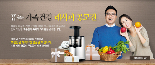원액기 브랜드 휴롬이 휴롬 원액기 사용자들을 위해 13일부터 11월 30일까지 공식 홈페이지를 통해 '가족건강 레시피' 공모전을 진행한다.