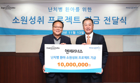 엔제리너스커피는 13일 "소셜 커머스 이벤트 진행으로 마련된 기부금 1000만원을 한국메이크어위시재단에 전달했다"고 밝혔다.