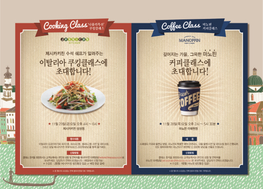 MPK그룹이 운영하는 프리미엄 베이커리 카페 '마노핀'과 이탈리안 홈메이드 뷔페 레스토랑 '제시카키친'이 커피클래스와 쿠킹클래스를 각각 개최한다.