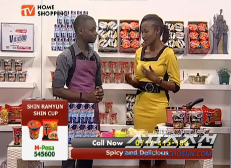 케냐 홈쇼핑 신라면 판매장면.