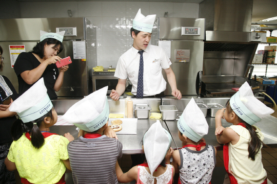 최근 식음료업계에서 안전 먹거리를 선호하는 소비자를 겨냥해 다양한 마케팅을 전개하고 있다. 사진은 롯데리아가 어린이를 대상으로 안전 먹거리 체험교실을 진행하는 모습. 사진제공=롯데리아