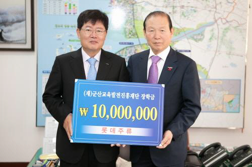 롯데주류가 20일 군산교육발전진흥재단에 1000만원을 기탁했다.