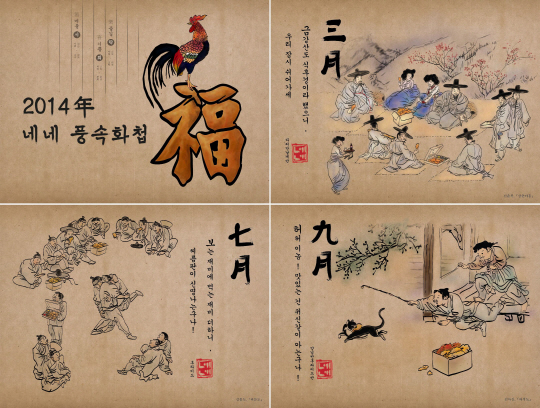 '2014 네네 풍속화첩 달력'은 네네치킨이 올 하반기에 개최한 '상상네스티벌 공모전'에서 디자인 부문 대상을 차지한 작품. 네네치킨의 슬로건인 행복(희), 나눔(시), Fun(락)을 테마로 잡아 조선시대 풍속화에 네네치킨의 메뉴를 접목해 패러디한 것으로 달력은 조선 풍속화의 인물들이 네네치킨을 먹는 상황을 재설정해 해학과 함께 따뜻하고 소박한 정서를 표현했다.