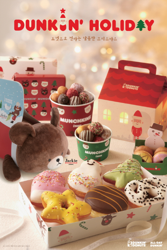 던킨도너츠가 크리스마스 도넛 15종 출시와 함께 '플라잉 재키' 증정 프로모션을 진행한다.