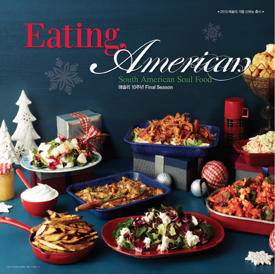 아메리칸 그릴 & 샐러드 애슐리에서 미국 남부 스타일의 'Eating, American' 2013년 애슐리 겨울 신메뉴를 선보인다. 올 한해 미국의 서부와 동부 지역의 특별한 메뉴들을 선보였던 것에 이어, 겨울 신메뉴는 애슐리 10주년 마지막 시즌을 마무리하는 의미로 미국 남부 지역의 메뉴를 애슐리 스타일로 재해석했으며 다양하면서 이국적인 메뉴를 맛 볼 수 있게 되었다.
