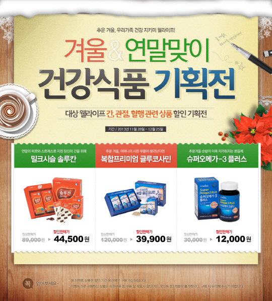 대상웰라이프 나경호 본부장은 "연말 올바른 건강 관리로 활기찬 새해를 맞이 할 수 있도록 이번 기획전을 준비했다"고 말했다.