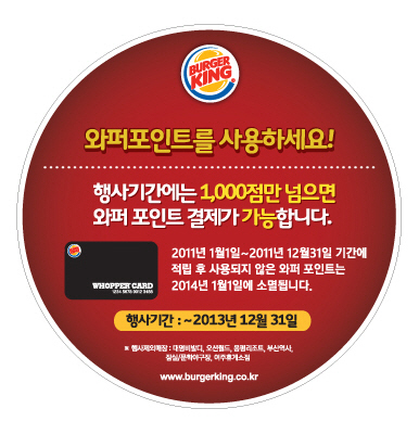 이번 이벤트는 2011년 1월 1일부터 2011년 12월 31일까지 적립된 포인트가 소멸될 예정으로 그동안 포인트를 사용하지 못한 고객들을 위해 마련되었다. 이벤트 기간에는 기존 5,000점 이상 되어야 사용 가능했던 와퍼포인트를 1,000점 이상이면 매장에서 사용할 수 있다.