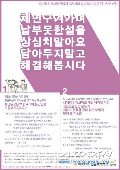 아름다운재단은 생계형 건보료 체납자들에게 체납보험료 분납액 1회분(최대 100만원)을 지원할 계획이다. 체납보험료을 분납할 경우 급여제한이 일시 해제돼 건강보험 급여를 받을 수 있다.