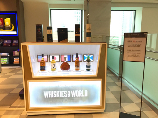 신세계면세점은 우선 2월 8일까지 명동점12층 주류 매장 앞에서 쌀쌀한 겨울 날씨에 어울리는 위스키와 꼬냑 5종 무료 시음행사를 진행할 예정이다 . 시음회는 지난 가을 진행된 칵테일 시음행사 때 고객들에게 큰 호응을 얻어 재기획됐다. 시음회 주류는 일본 산토리 위스키(야마자키우메슈YAMAZAKI UMESHU, 치타CHITA), 버번 위스키(짐빔JIMBEAM), 싱글몰트 위스키(라프로익LAPHROAIG), 꼬냑(꾸바제COURVOISIER) 총 5가지로 구성, 방문하는 내ㆍ외국인들은 모두 시음해보고 제품 구매가 가능하다.