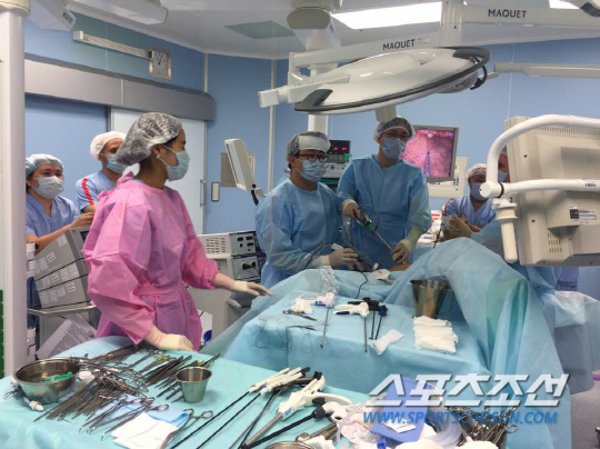 박병관 중앙대병원 외과 교수가 아스타나대통령병원에서 복강경수술을 시연하고 있다.
