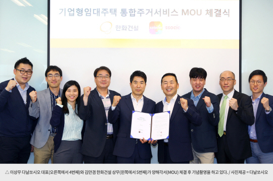 한편 쏘시오는22일 한화건설과 뉴스테이 (기업형 임대주택)의 통합주거서비스 플랫폼 제공 및 운영에 대한 양해각서(MOU)를 체결하면서 뉴스테이를 추진하고 있는 다양한 건설사들과 유사한 협력이 확산될 것으로 기대할 뿐만 아니라, 일부 건설 관계자들은 통합주거서비스를 해외 신도시 프로젝트의 주요 아이디어로 활용하고자 한다고 밝혔다.이정혁 기자 jjangga@sportschosun.com